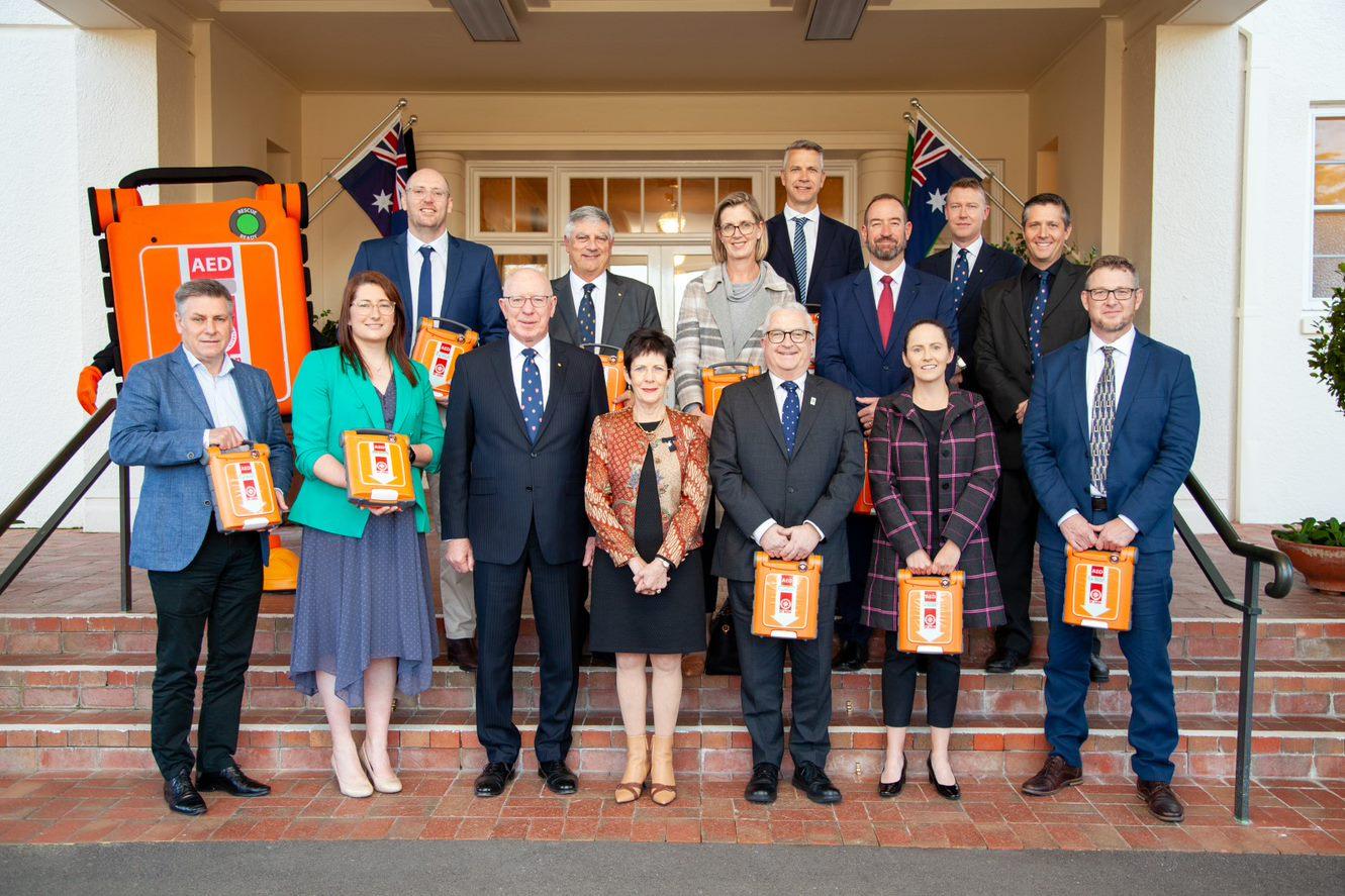 His Excellency General the Honourable David Hurley AC DSC (Retd), Governor-General of the Commonwealth of Australia, today presented a defibrillator to representatives from ten sporting codes across the ACT.