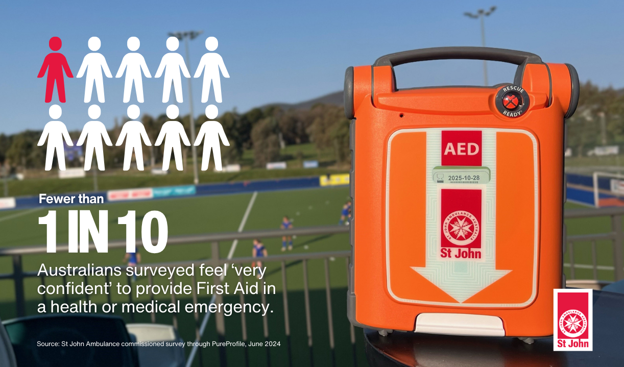 - A recent St John Ambulance survey found only 1 in 10 Australians are ‘very confident’ to provide first aid in a health or medical emergency.